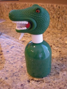 I came home from work last night and what to my wondering eyes should appear…but a box from Fed Ex on the table and a T-Rex spray bottle inside 🙂 If you are a fan of Good Eats…you’ve seen this before. Thank you AB, I love him!!!