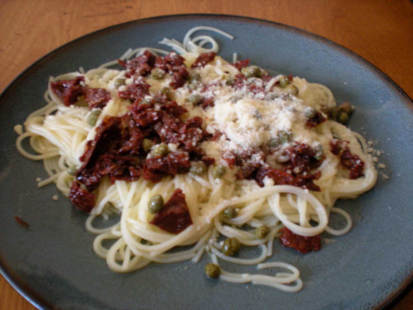 I added a little olive oil to bottom of serving dish, garlic, sun dried tomatoes, capers and pecorrino cheese. You now know the art of cooking pasta, so get out there and come up with some creative ideas of your own.