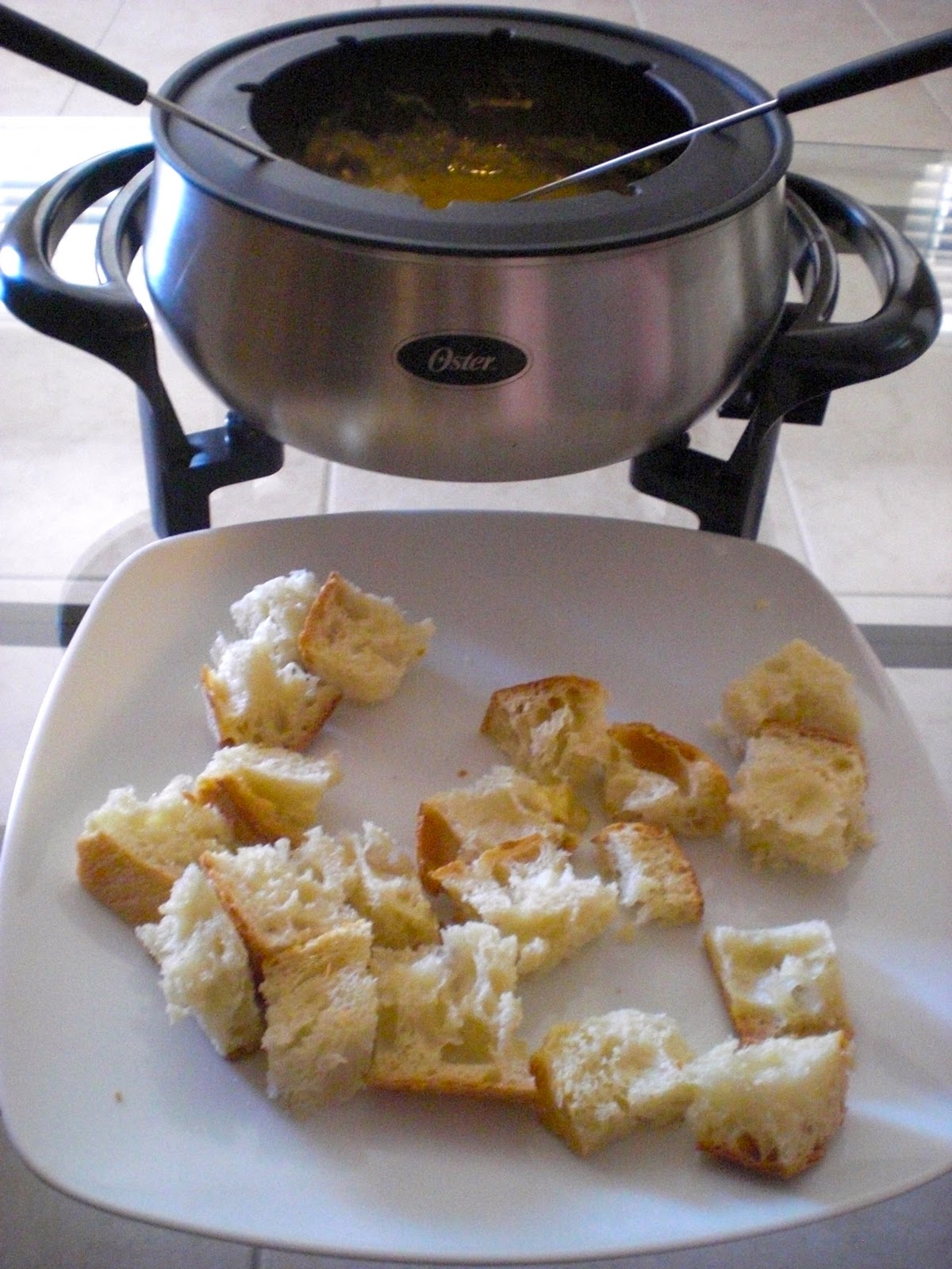 | Rub garlic inside fondue pot |