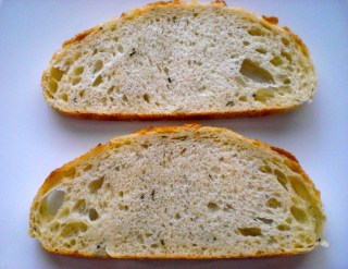 Spritz the bread surface that’s staring up at you with olive oil using either a Misto or a pump sprayer. A light coat will do, don’t soak.