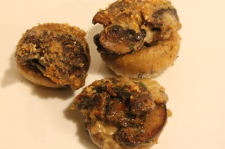 Heat broiler to high and move the oven rack up 1 level. Mound 1 tablespoon of filling into each mushroom cap, avoiding overstuffing the caps. Top each cap with enough bread crumbs to cover the filling. Broil the mushroom caps on high for 3 to 4 minutes, or until the filling bubbles and the tops have browned.