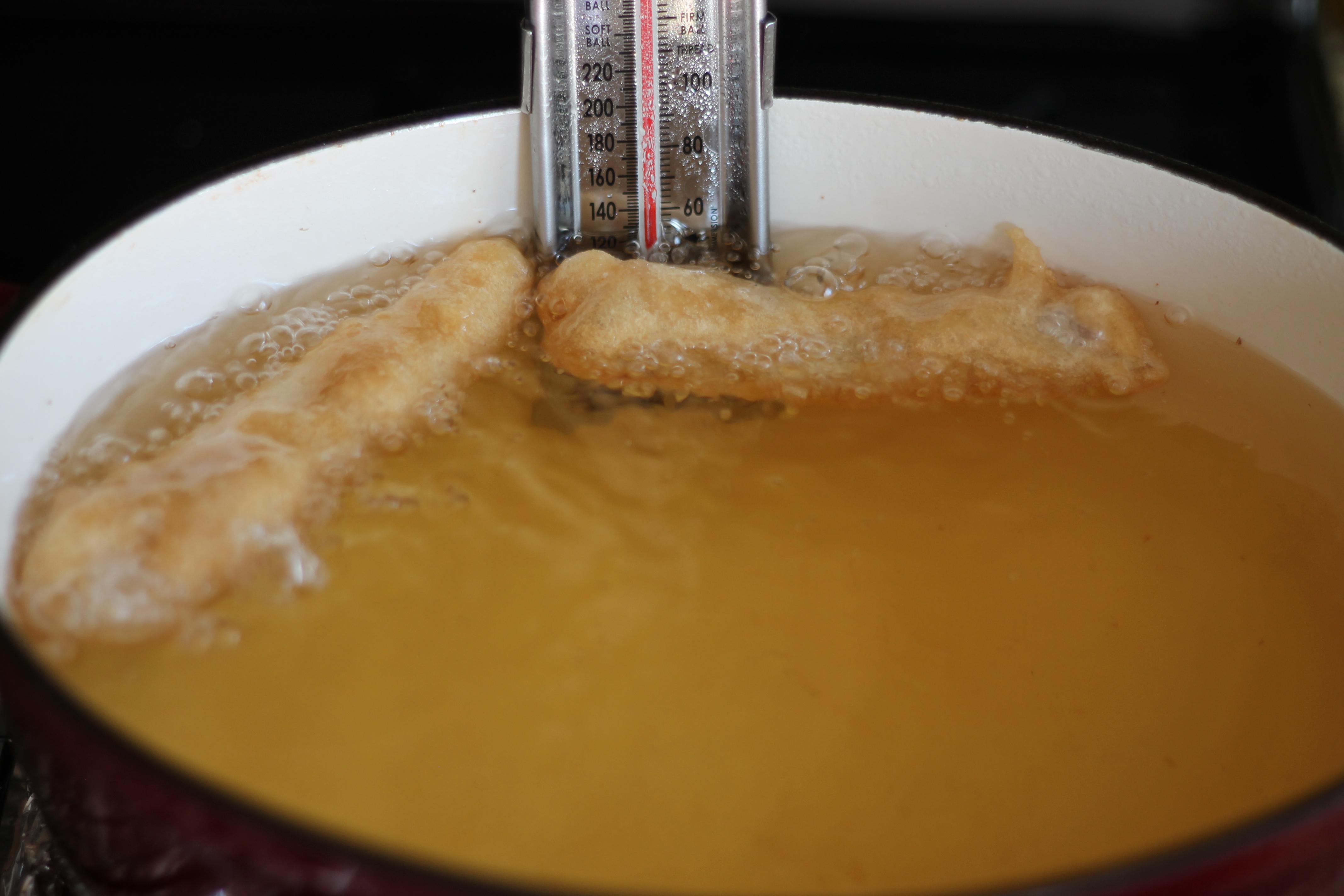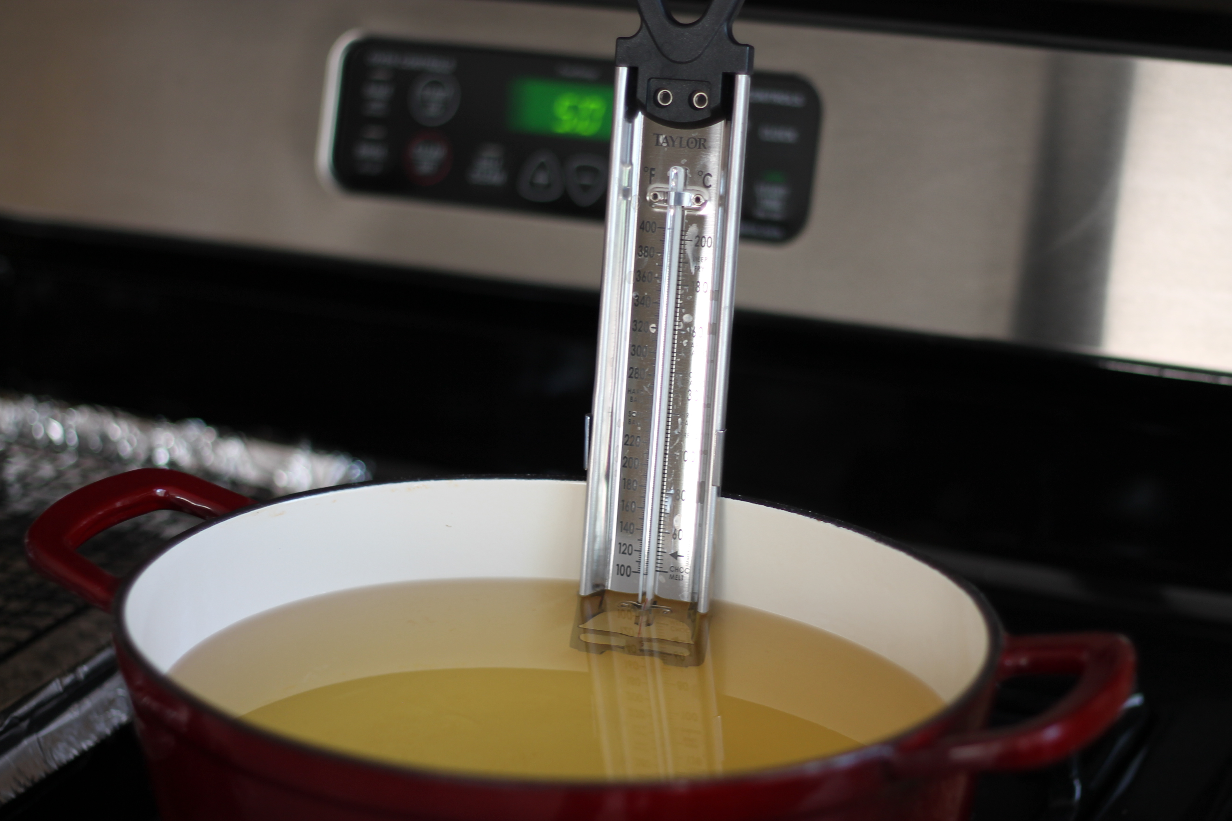 Heat the safflower oil in a 5-quart Dutch oven over high heat until it reaches 320 degrees.